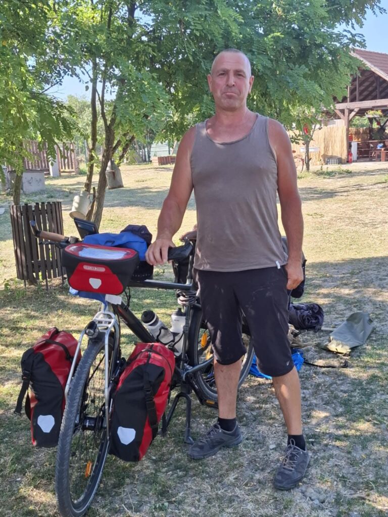 Fordulok a dűlőre, látom, egy sportos alkatú, barnára sült kerékpáros férfi áll a napon és várakozással néz rám az autó üvegén keresztül. Kiszállok…az első, amit ki tudok ejteni a számon a 38 fokban….Helló, are you crazy 🙂 Yes, I am crazy…hangzik a válasz nevetve és tudjuk miről beszélünk 🙂.